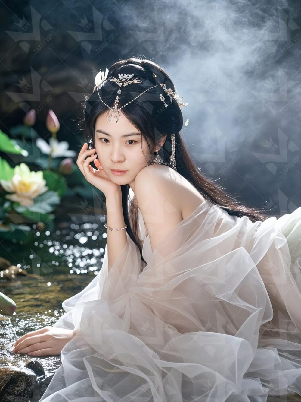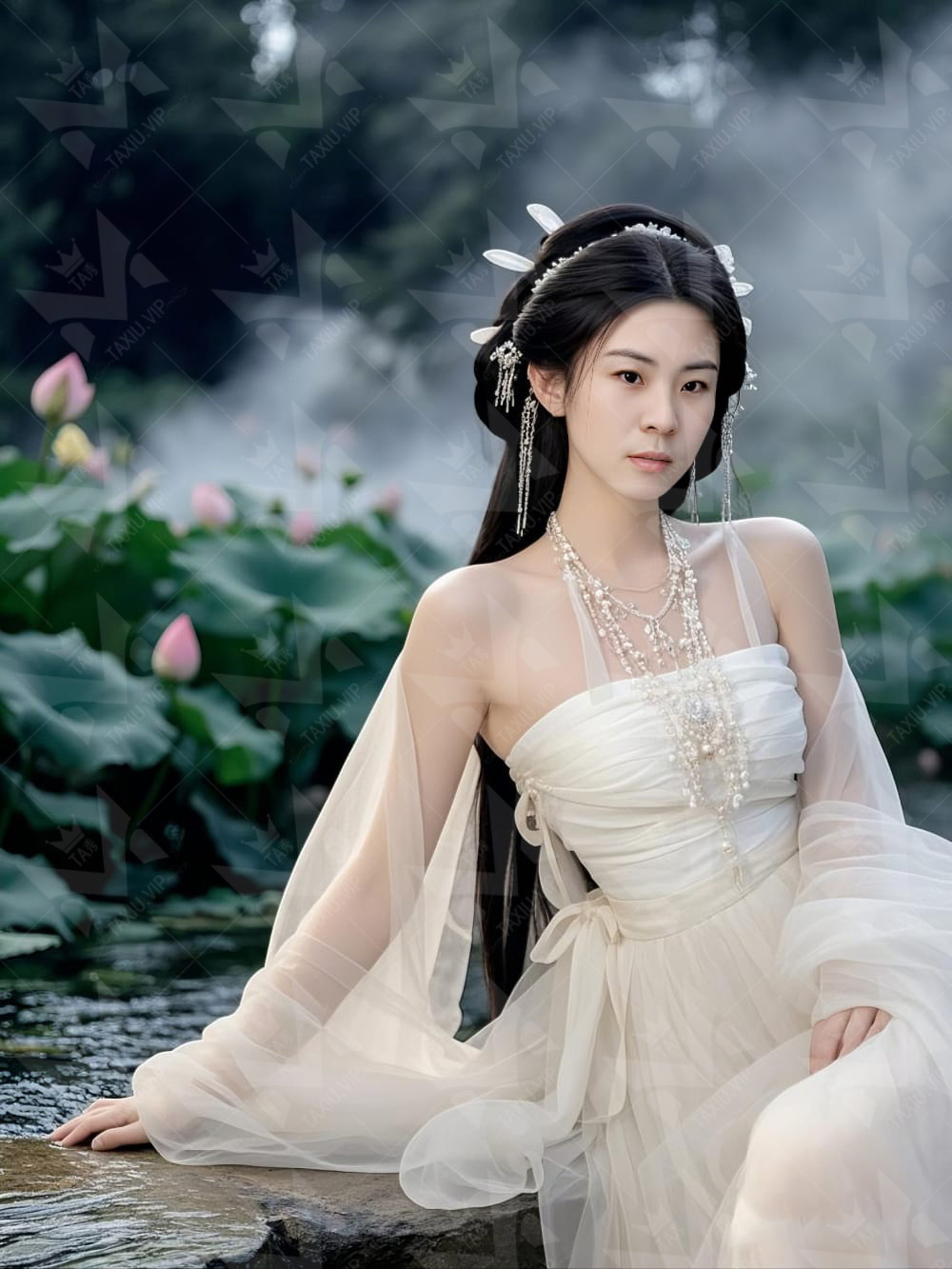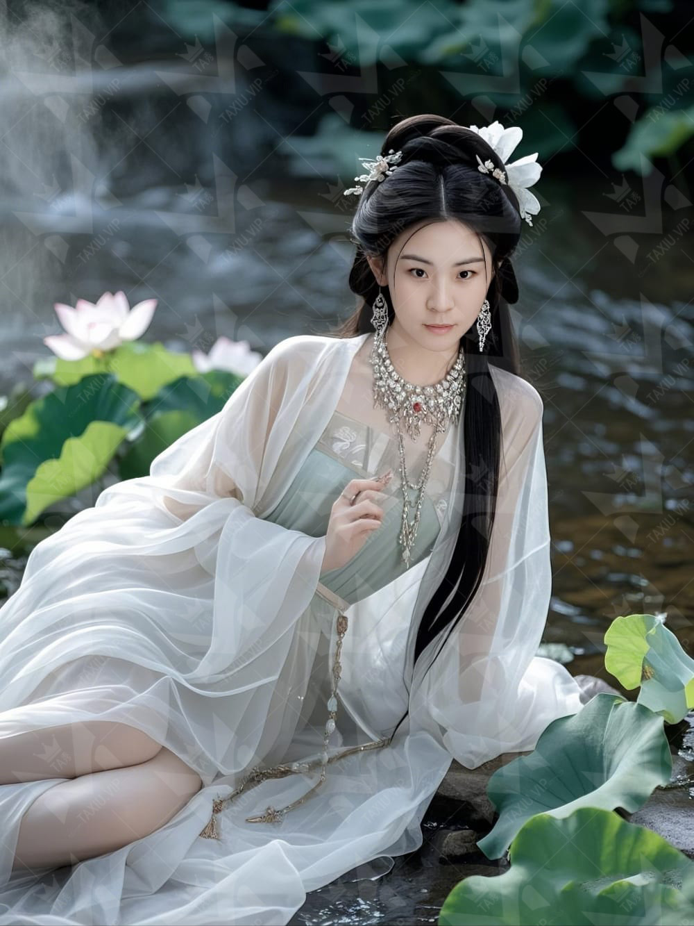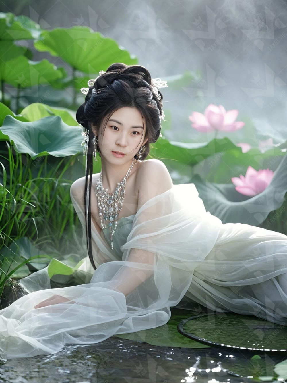 荷花池畔的妩媚女仙
