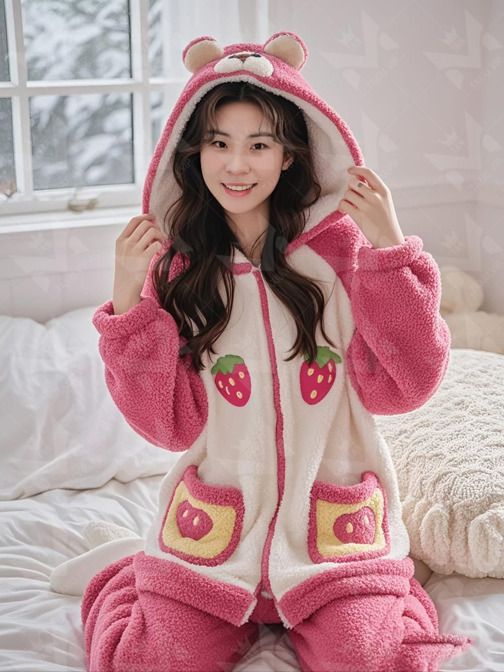 兜帽草莓熊睡衣